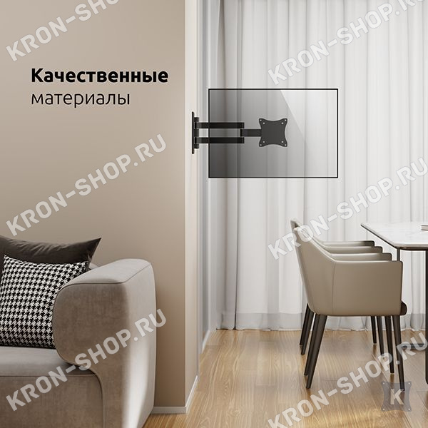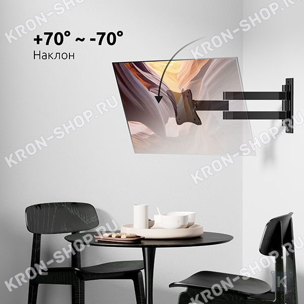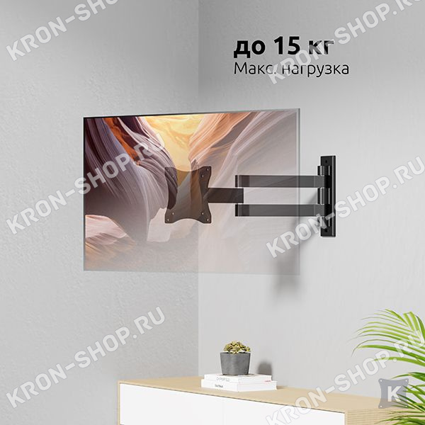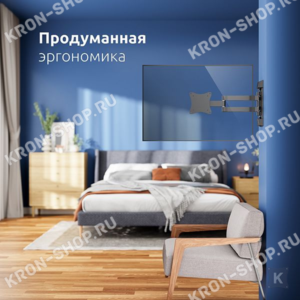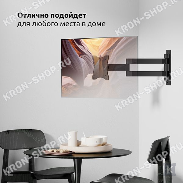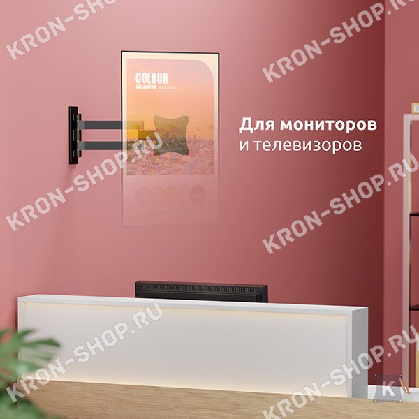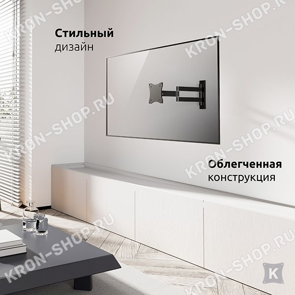 Настенный поворотно-наклонный кронштейн для телевизоров и мониторов с диагональю от 26 до 55 дюймов.