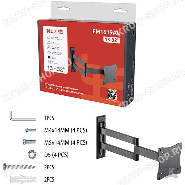 Кронштейн Uniteki FM1619AL является оптимальным вариантом шарнирного кронштейна небольшого размера и отличается оптимальной подвижностью, надежностью и оригинальным внешним видом.