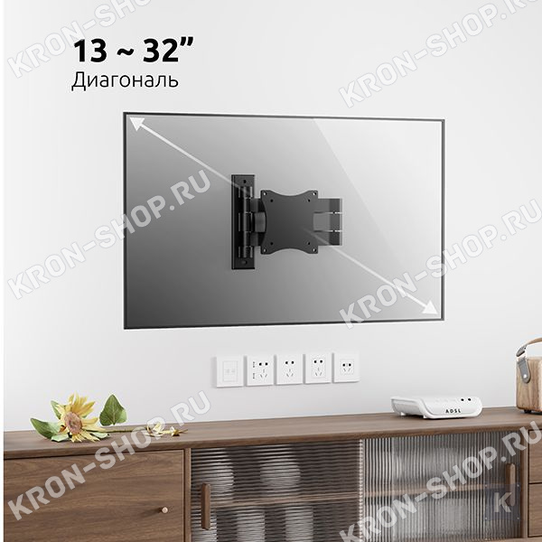 Настенный поворотно-наклонный кронштейн для небольших телевизоров и мониторов с диагональю от 13 до 32 дюймов.