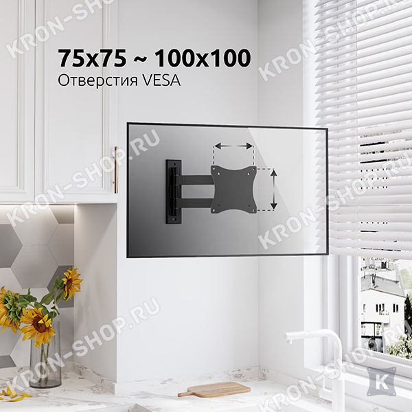 Настенный поворотно-наклонный кронштейн для телевизоров и мониторов с диагональю от 37 до 75 дюймов.