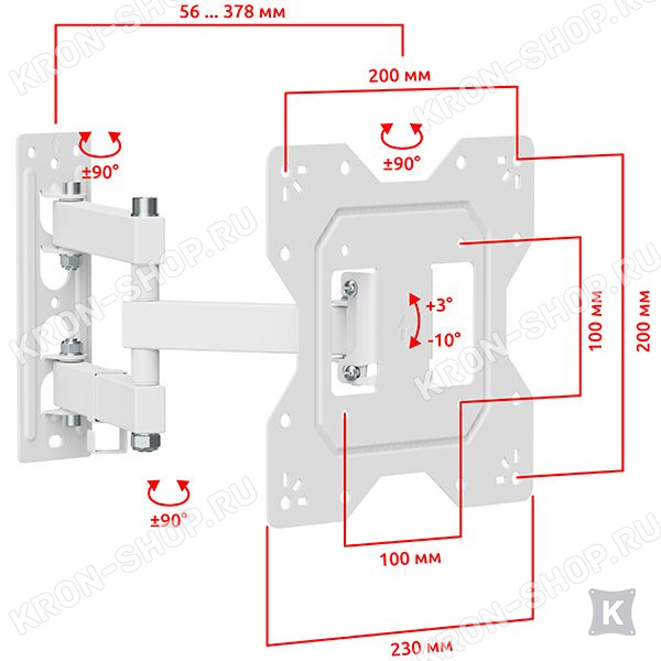 Настенный поворотно-наклонный кронштейн для небольших телевизоров и мониторов с диагональю от 10 до 32 дюймов.