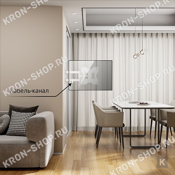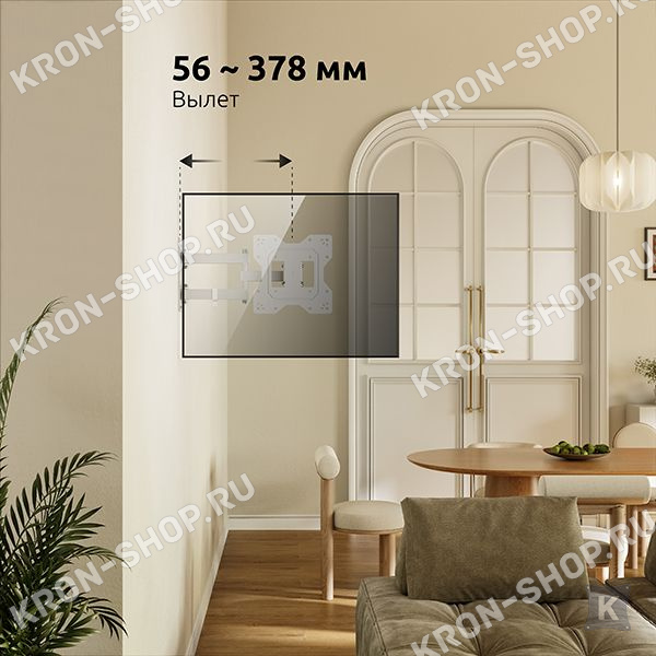 Настенный поворотно-наклонный кронштейн для телевизоров и мониторов с диагональю от 32 до 65 дюймов.