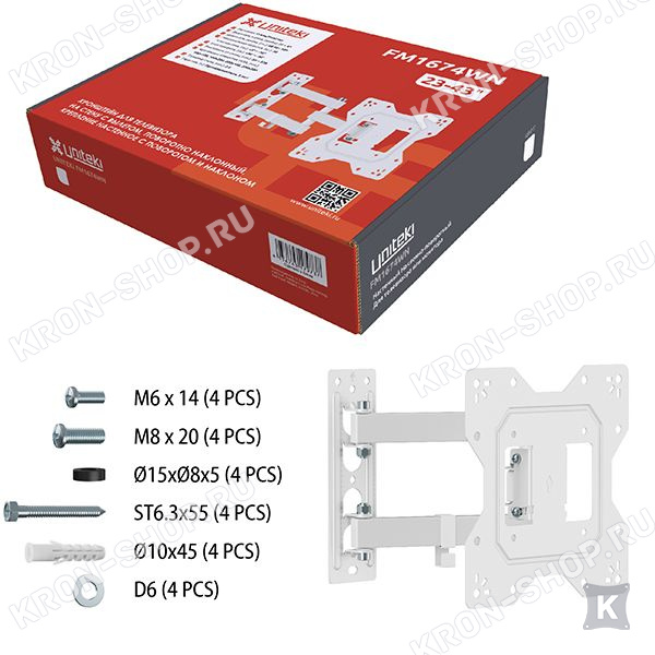 Регулируемое расстояние от стены до панели, несколько степеней свободы (наклон, поворот, сдвиг), простота и совершенство модели Uniteki FM1674WN сделали его максимально удобным и доступным для наших покупателей.