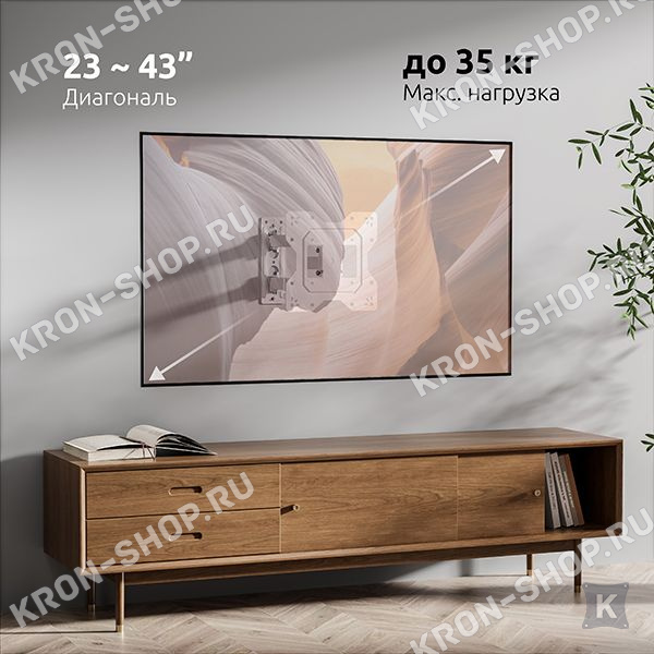 Настенный поворотно-наклонный кронштейн для телевизоров и мониторов с диагональю от 23 до 43 дюймов.