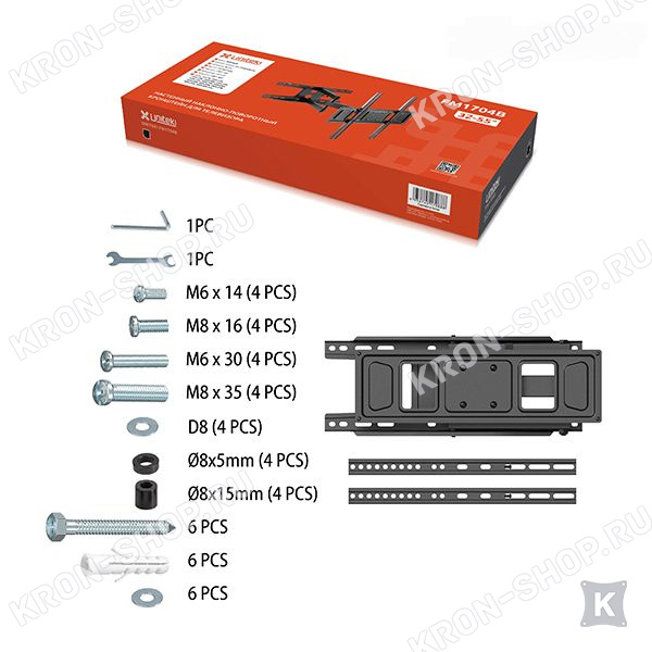 Регулируемое расстояние от стены до панели, несколько степеней свободы (наклон, поворот, сдвиг), простота и совершенство модели Uniteki FM1704B сделали его максимально удобным и доступным для наших покупателей.