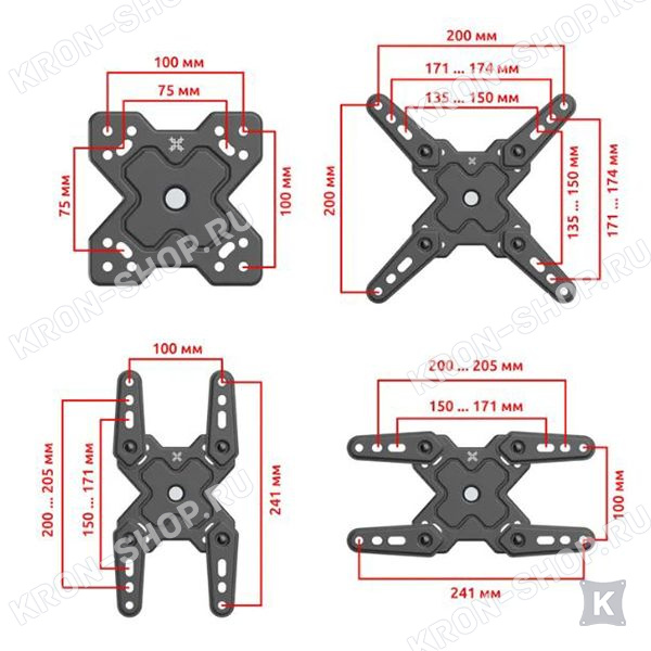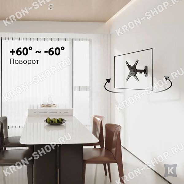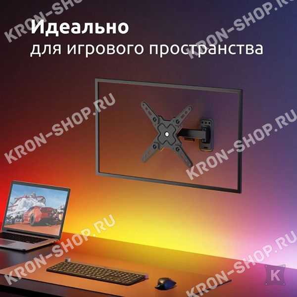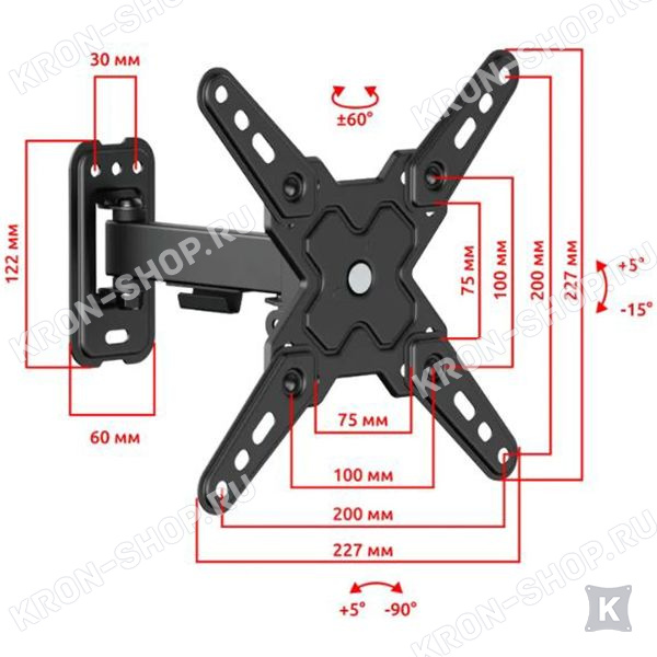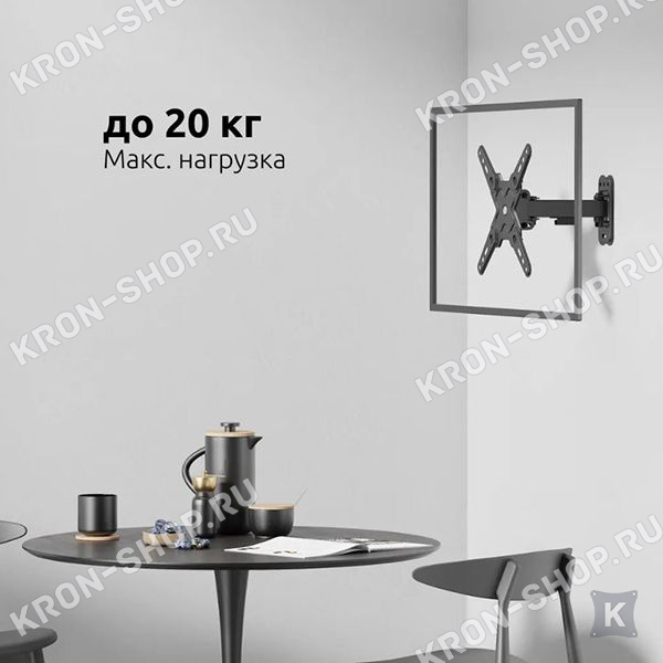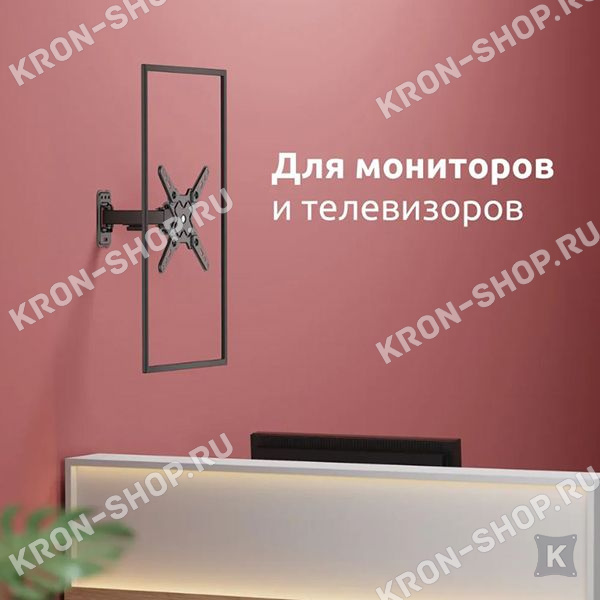 Настенный поворотно-наклонный кронштейн для телевизоров и мониторов с диагональю от 13 до 43 дюймов.