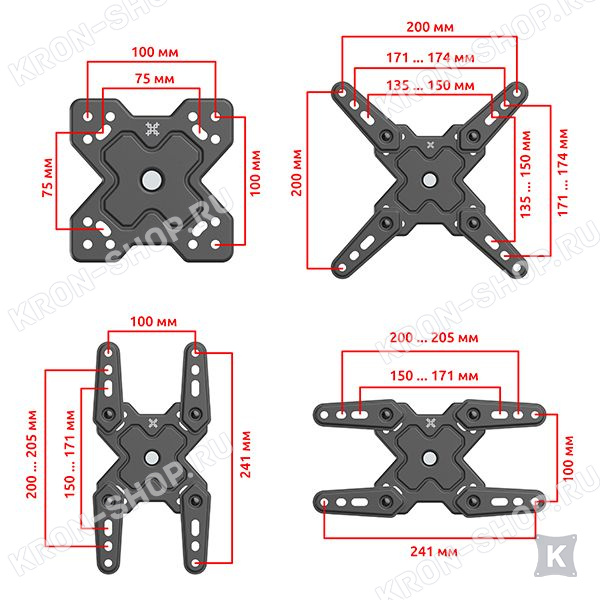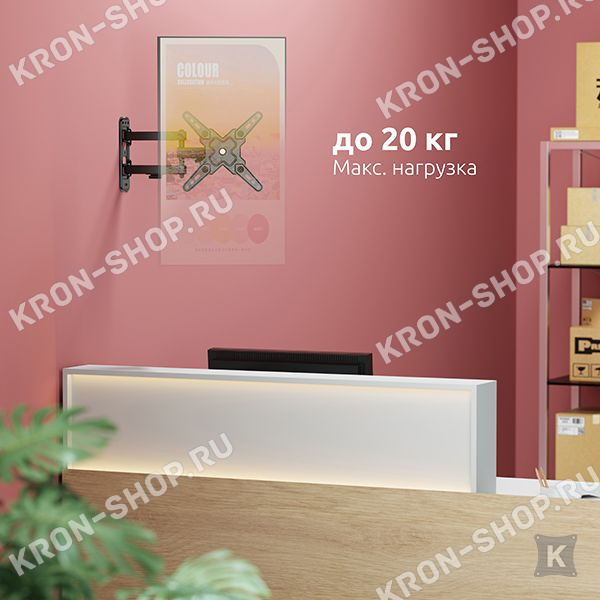 Настенный поворотно-наклонный кронштейн для телевизоров и мониторов с диагональю от 13 до 43 дюймов.