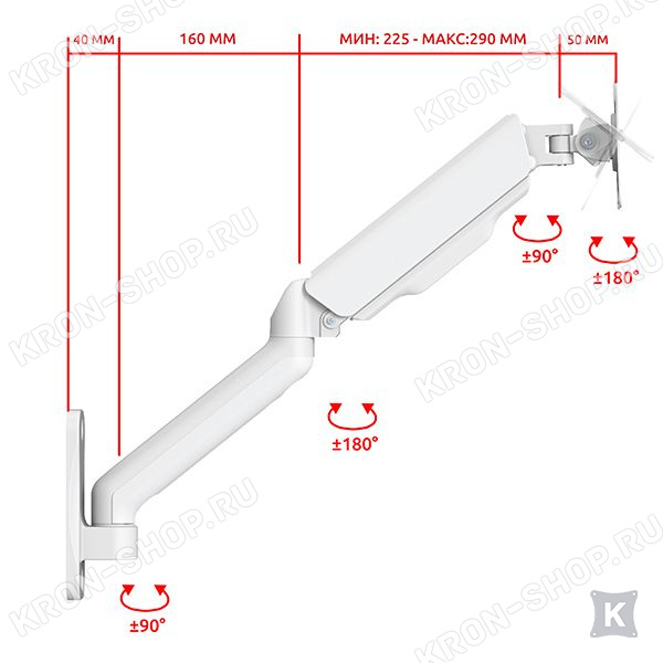 - газовая пружина обеспечивает плавное движение телевизора вверх и вниз, а также даёт возможность фиксировать телевизор в любом промежуточном положении.