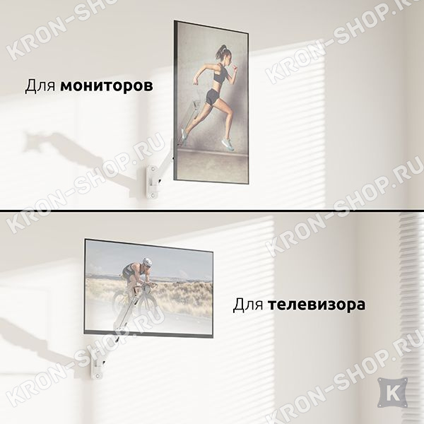 Настенный поворотно-наклонный кронштейн для телевизоров и мониторов с диагональю от 23 до 42 дюймов.