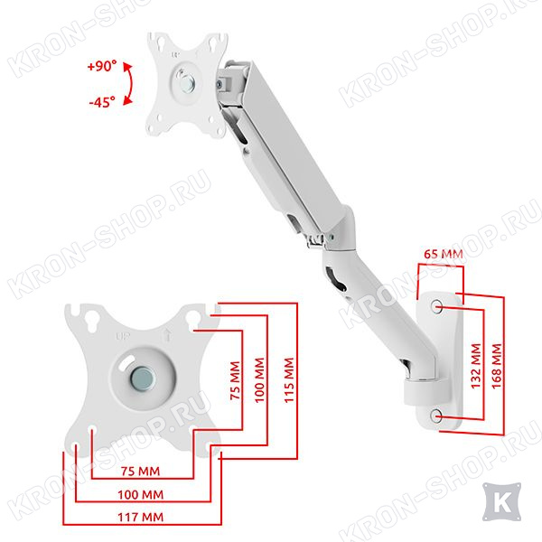 Настенный поворотно-наклонный кронштейн для телевизоров и мониторов с диагональю от 32 до 65 дюймов.