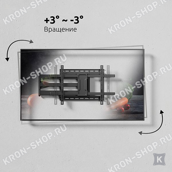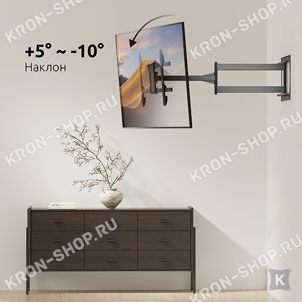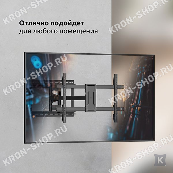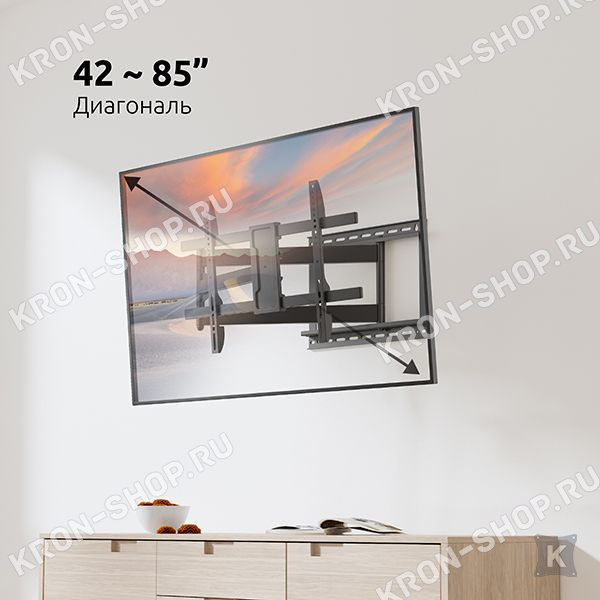 Настенный поворотно-наклонный кронштейн для телевизоров и мониторов с диагональю от 42 до 85 дюймов.