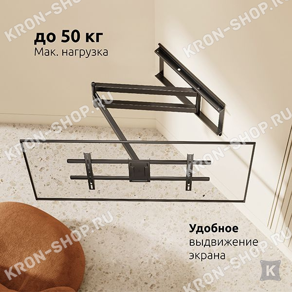 Наклонно-поворотный кронштейн Uniteki FML60N разработан для лучшей совместимости с большинством LCD/LED телевизоров и мониторов диагональю от 42 до 85 дюймов и максимальным весом 50 кг.