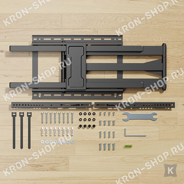 Кронштейн поставляется с подробной инструкцией и широким набором креплений для настенной инсталляции.