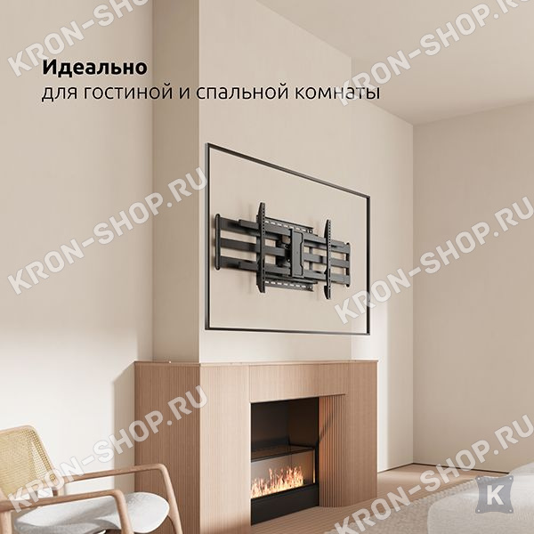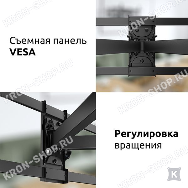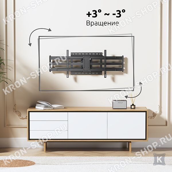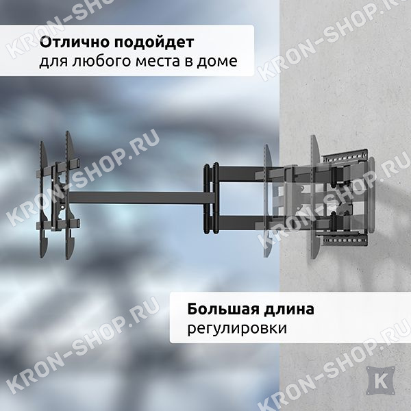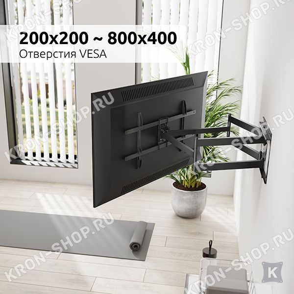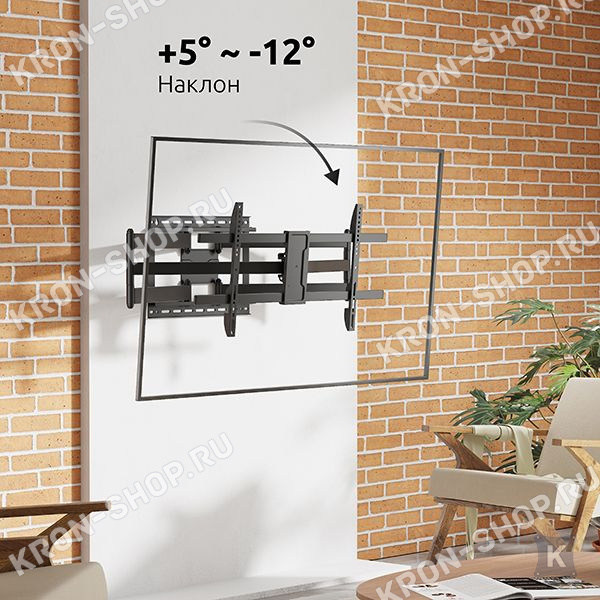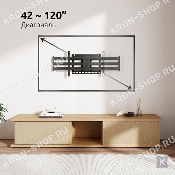 Настенный поворотно-наклонный кронштейн для телевизоров и мониторов с диагональю от 42 до 120 дюймов.