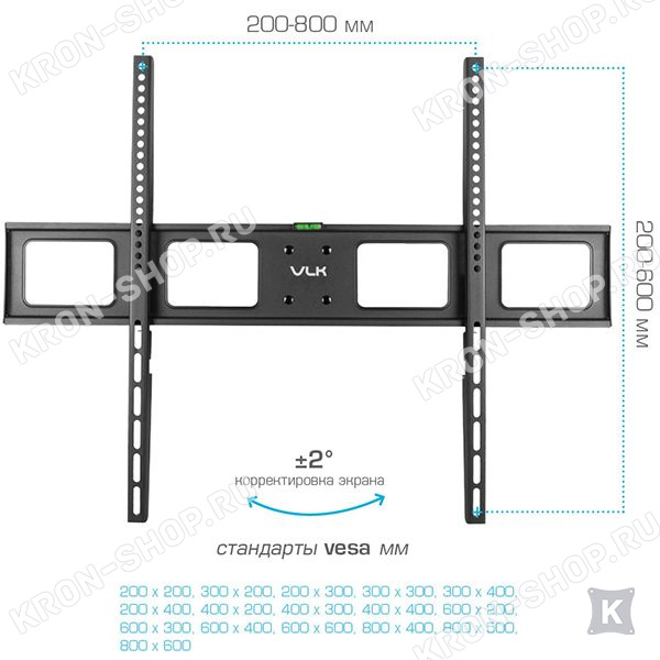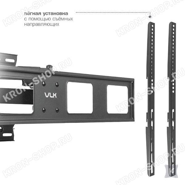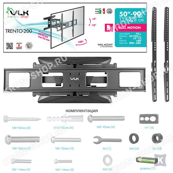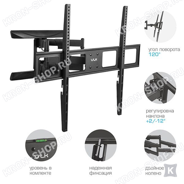 Кронштейн VLK Trento-200 изготовлен из высококачественной стали и способен выдерживать нагрузку до 75 кг. Конструкция кронштейна VLK Trento-200 способна наклонять ТВ на угол до 12°, а так же поворачивать на угол ±60°. Вы с лёгкостью можете установить любое удобное для просмотра положение экрана.