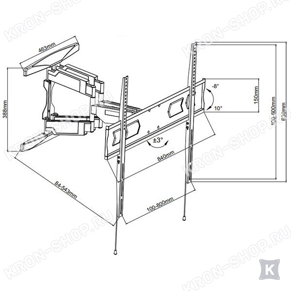 Настенный поворотно-наклонный кронштейн для телевизоров и мониторов с диагональю от 42 до 90 дюймов.