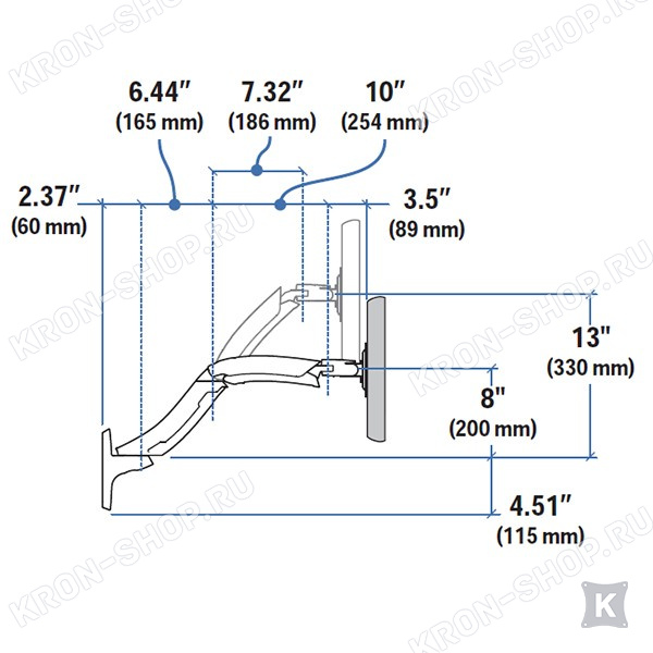 Степени свободы крепления Ergotron MX Wall Mount LCD Arm (45-228-026):