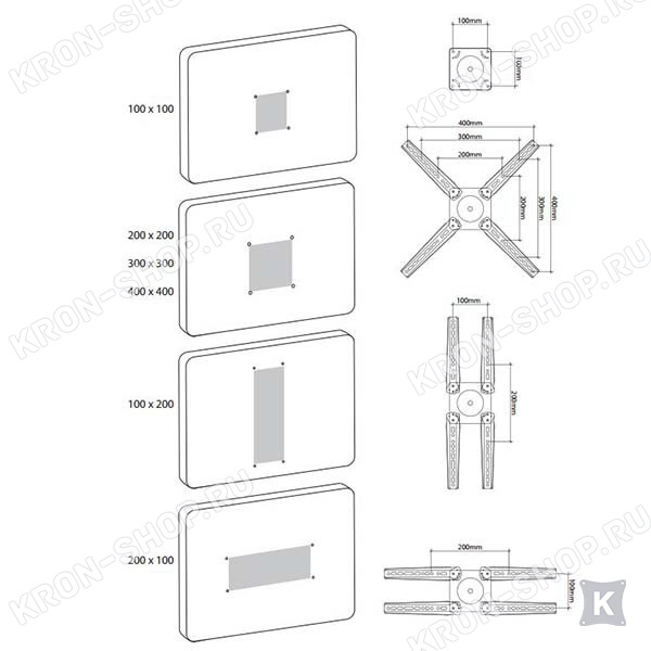 Настенный кронштейн с возможностью вертикального смещения для телевизоров с диагональю от 27 до 42 дюймов.