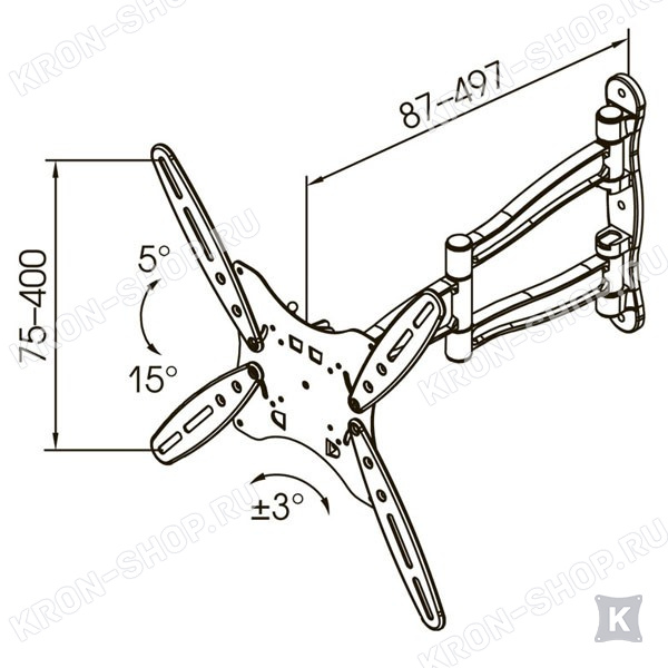 Наклонно-поворотный стальной кронштейн Kromax Techno-5 разработан для лучшей совместимости с большинством LCD/LED телевизоров и мониторов диагональю от 26 до 40 дюймов и максимальным весом 35 кг.