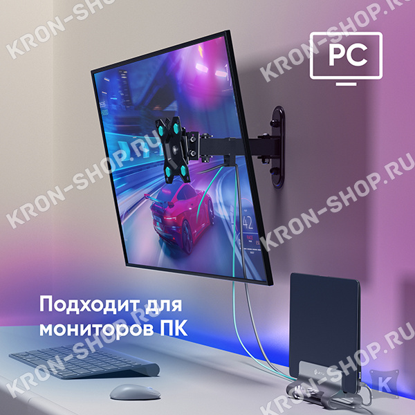 Настенный поворотно-наклонный кронштейн для телевизоров и мониторов с диагональю от 15 до 35 дюймов.