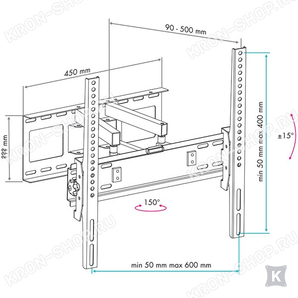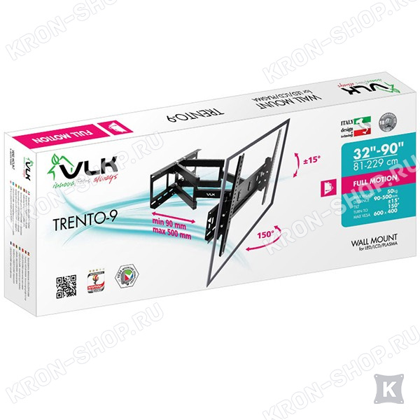 Кронштейн VLK Trento-9 изготовлен из высококачественной стали и способен выдерживать нагрузку до 50 кг. Конструкция кронштейна VLK Trento-9 способна наклонять ТВ на угол до 15°, а так же поворачивать на угол ±75°. Вы с лёгкостью можете установить любое удобное для просмотра положение экрана.