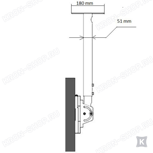 Потолочный кронштейн в чёрном цвете для телевизоров и мониторов с диагональю от 26 до 40 дюймов c возможностью размещения телевизора параллельно полу.