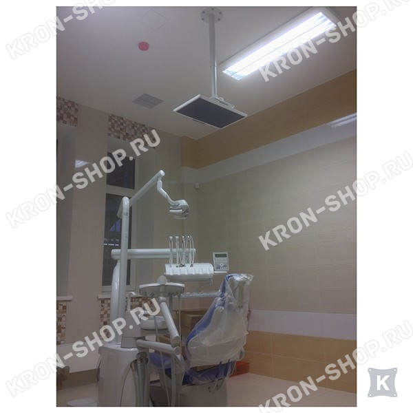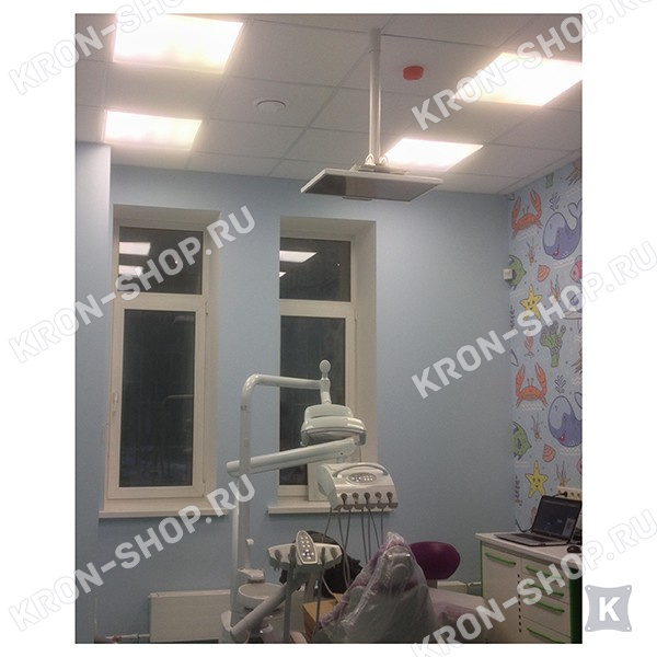 Кронштейн предназначен для крепления телевизора на потолке в стоматологическом кабинете. Благодаря регулируемому расстоянию от потолка и углу наклона 90°, телевизор можно разместить параллельно потолку для удобства просмотра. Кронштейн изготовлен из прочного металла, что обеспечивает надежность и долговечность конструкции.