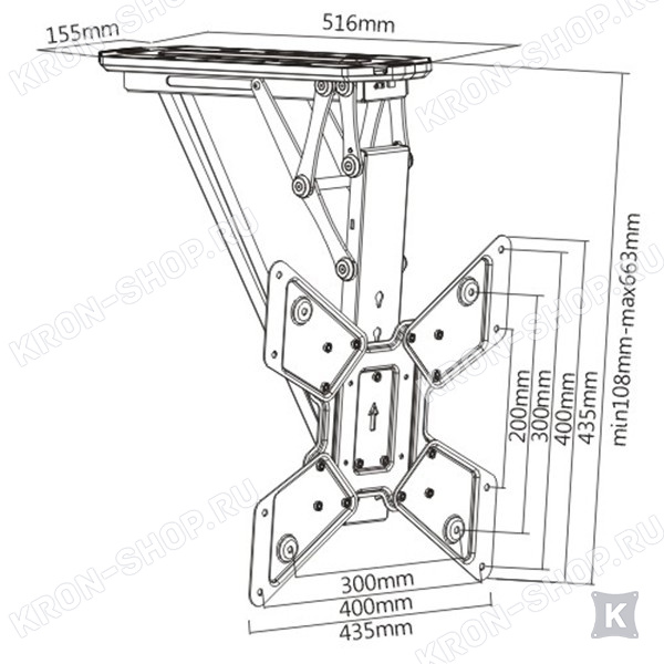 Расстояние от потолка: 108-663 мм. Максимальная нагрузка: 30 кг.