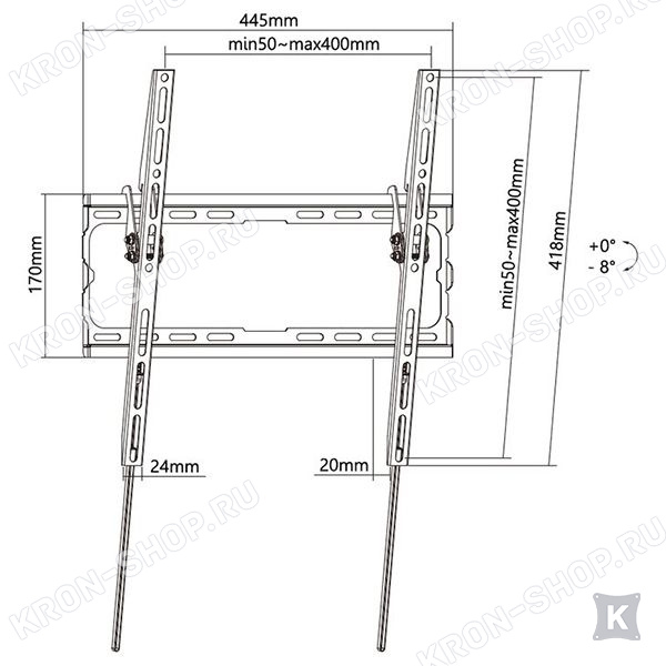 Кронштейн Digis DSM-3444T позволяет располагать телевизор вертикально на стене, либо задавать наклон до 8 градусов.