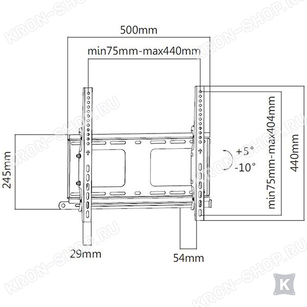 Настенный наклонный кронштейн для телевизоров с диагональю от 32 до 55 дюймов.