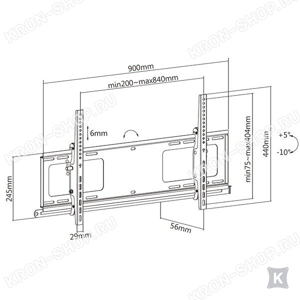Настенный наклонный кронштейн для установки телевизоров и мониторов с диагональю от 37 до 75 дюймов.