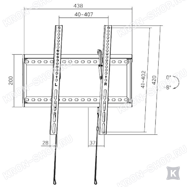 Настенный наклонный кронштейн для установки телевизоров и мониторов с диагональю от 17 до 43 дюймов.