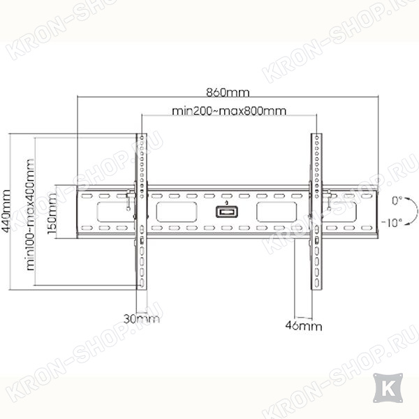 Крепление устанавливается в наклонном положении, которое регулируется на +-10°, чтобы обеспечить дисплею оптимальный просмотр.