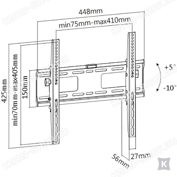 Настенный наклонный кронштейн для небольших телевизоров и мониторов с минимальным расстоянием до стены.