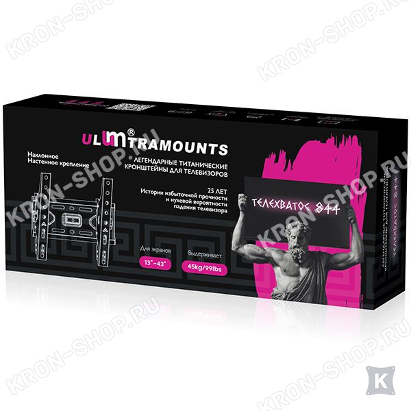 Кронштейн Ultramounts UM844 позволяет повесить телевизор или монитор весом до 45 кг с возможностью наклона до 15 градусов. Модель подходит для телевизоров или мониторов с диагональю до 43 дюймов.