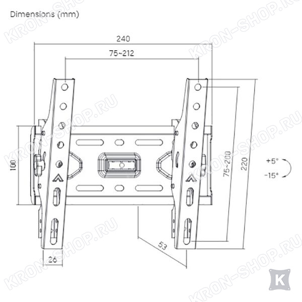 Настенный наклонный кронштейн для установки телевизоров и мониторов с диагональю от 13 до 43 дюймов.