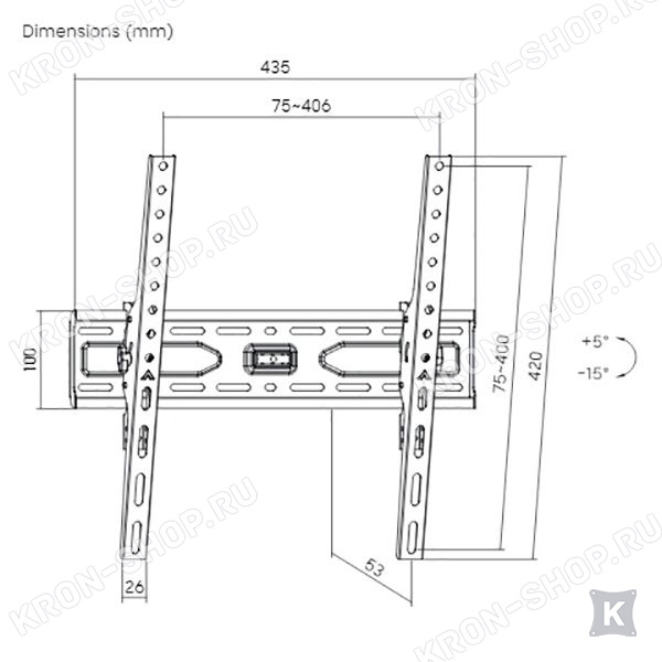 Настенный наклонный кронштейн для установки телевизоров и мониторов с диагональю от 32 до 75 дюймов.