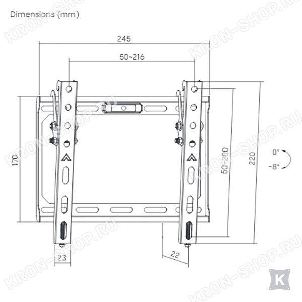 Настенный наклонный кронштейн с минимальным расстоянием до стены для телевизоров с диагональю от 32 до 55 дюймов.