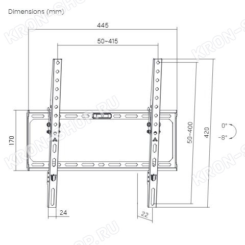 Настенный кронштейн с возможностью наклона для телевизоров с диагональю от 15 до 47 дюймов.