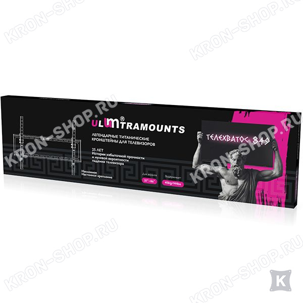 Кронштейн Ultramounts UM849 позволяет повесить телевизор или монитор весом до 45 кг с возможностью наклона до 8 градусов. Модель подходит для телевизоров или мониторов с диагональю до 86 дюймов.