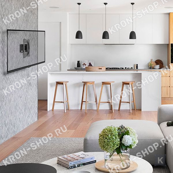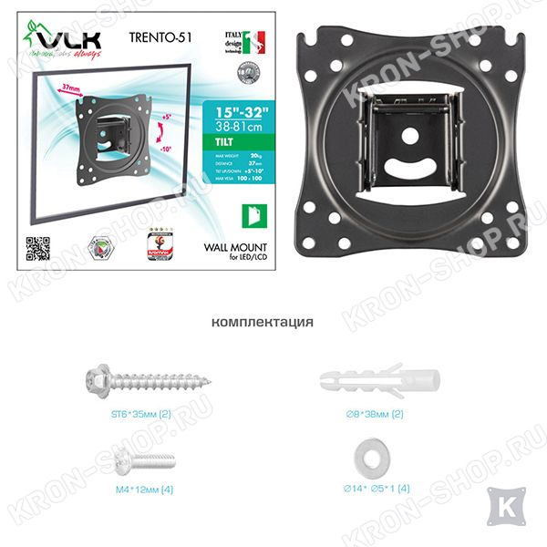 Кронштейн VLK Trento-51 позволяет располагать телевизор вертикально на стене, либо задавать наклон до 10 градусов с плавной регулировкой.