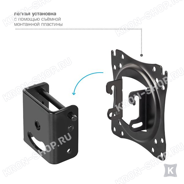 Кронштейн прост в установке и надёжен в использовании. Максимальная нагрузка на кронштейн – 20 кг.