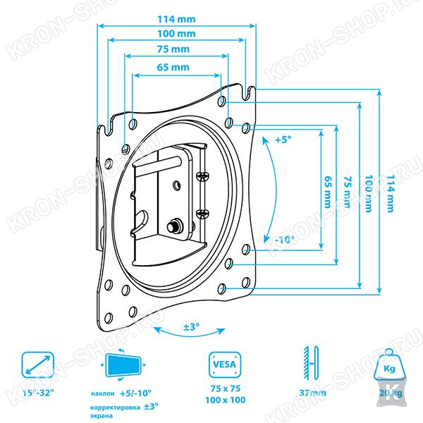 Настенный наклонный кронштейн для телевизоров с диагональю от 15 до 32 дюймов.