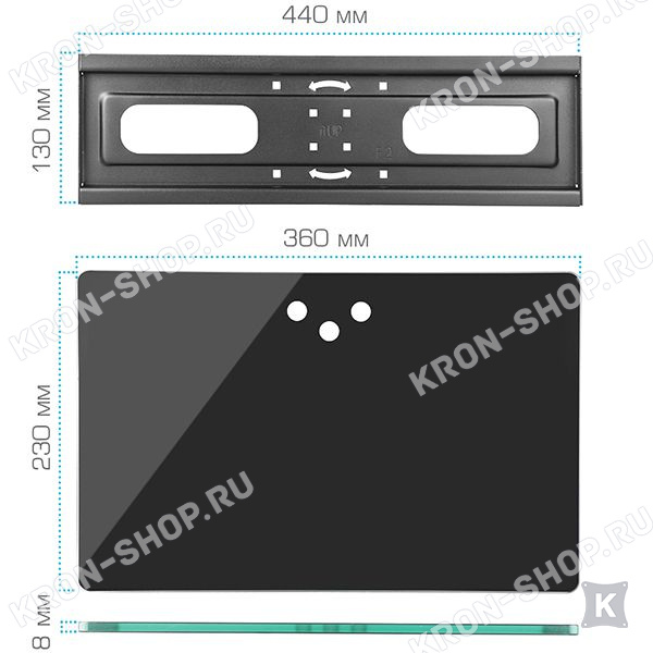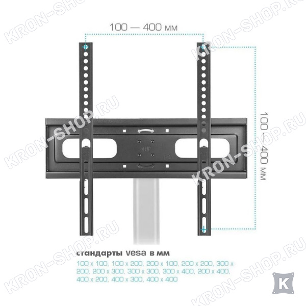 Максимальные посадочные размеры по горизонтали – 400 мм, по вертикали – 400 мм. Максимальная нагрузка на подставку – 30 кг. Предварительно отсортированные крепежные элементы для быстрой и легкой инсталляции.