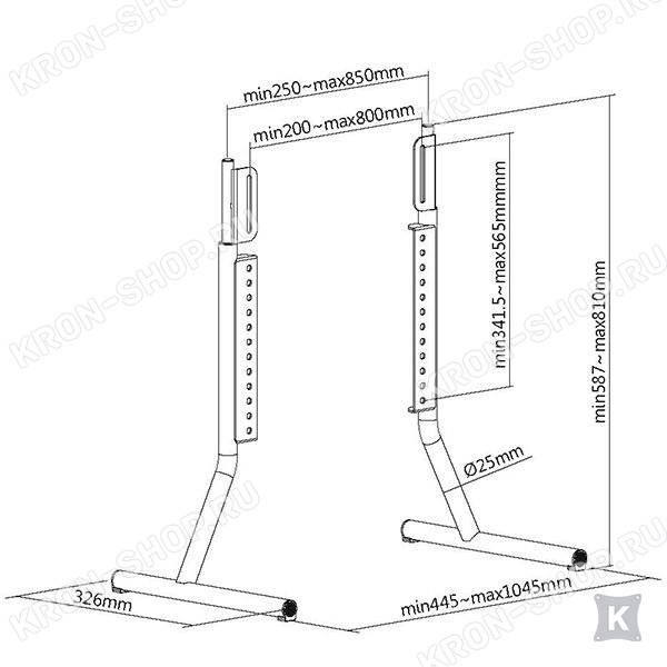 Максимальные посадочные размеры по горизонтали – 800 мм, по вертикали – 400 мм. Максимальная нагрузка на подставку – 40 кг. Предварительно отсортированные крепежные элементы для быстрой и легкой инсталляции.