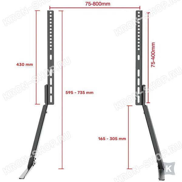 Настольная подставка для телевизоров и мониторов с диагональю от 23 до 75 дюймов.