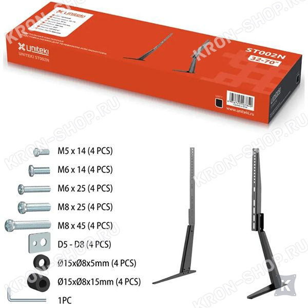 Настольная подставка Uniteki ST002N предназначена для плоскопанельных телевизоров с диагональю экрана от 40 до 70 дюймов. Надежная стальная конструкция.