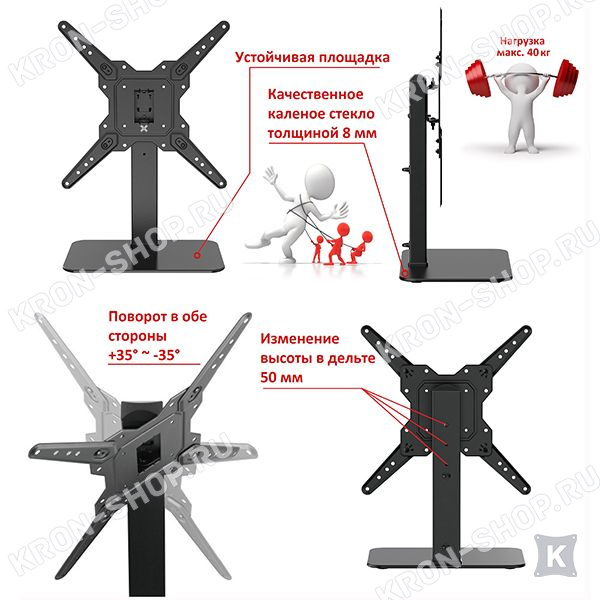 Настольная подставка для телевизоров и мониторов с диагональю от 22 до 50 дюймов.