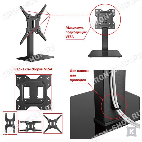 Настольная подставка для телевизоров и мониторов с диагональю от 26 до 55 дюймов.