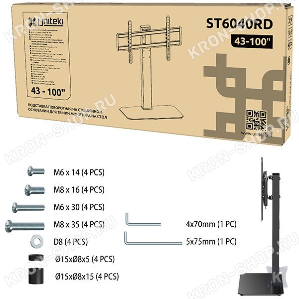 Настольная подставка Uniteki ST6040RD предназначена для плоскопанельных телевизоров с диагональю экрана от 43 до 100 дюймов.